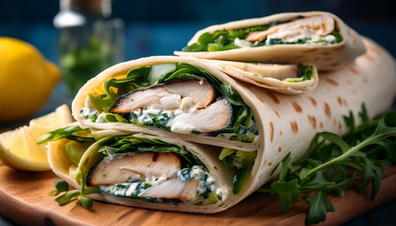 - Verdeel de ham, spinazie, geraspte Gouda en Italiaanse kruiden gelijkmatig over de wraps.